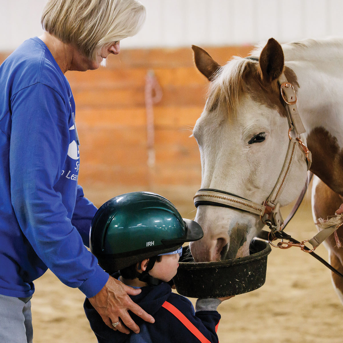 Therapeutic/Adaptive Riding: Participants enjoy time in the saddle, practicing skills such as balance, steering, and connection with the horse in a safe and supportive environment.